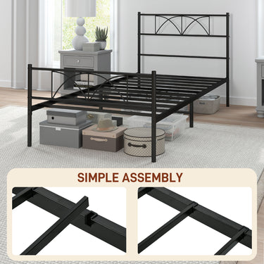 HOMCOM Metal Full Platform Bed Frame with Headboard, Steel Slat Support, Underbed Storage, No Box Spring Needed, Easy Assembly