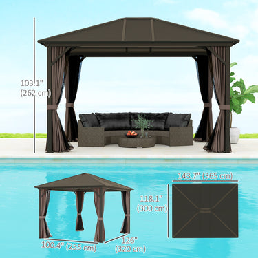 Outsunny 10' x 12' Deluxe Hardtop Gazebo Aluminum Frame Patio Gazebo Garden Sun Shelter Outdoor Pavilion, Coffee