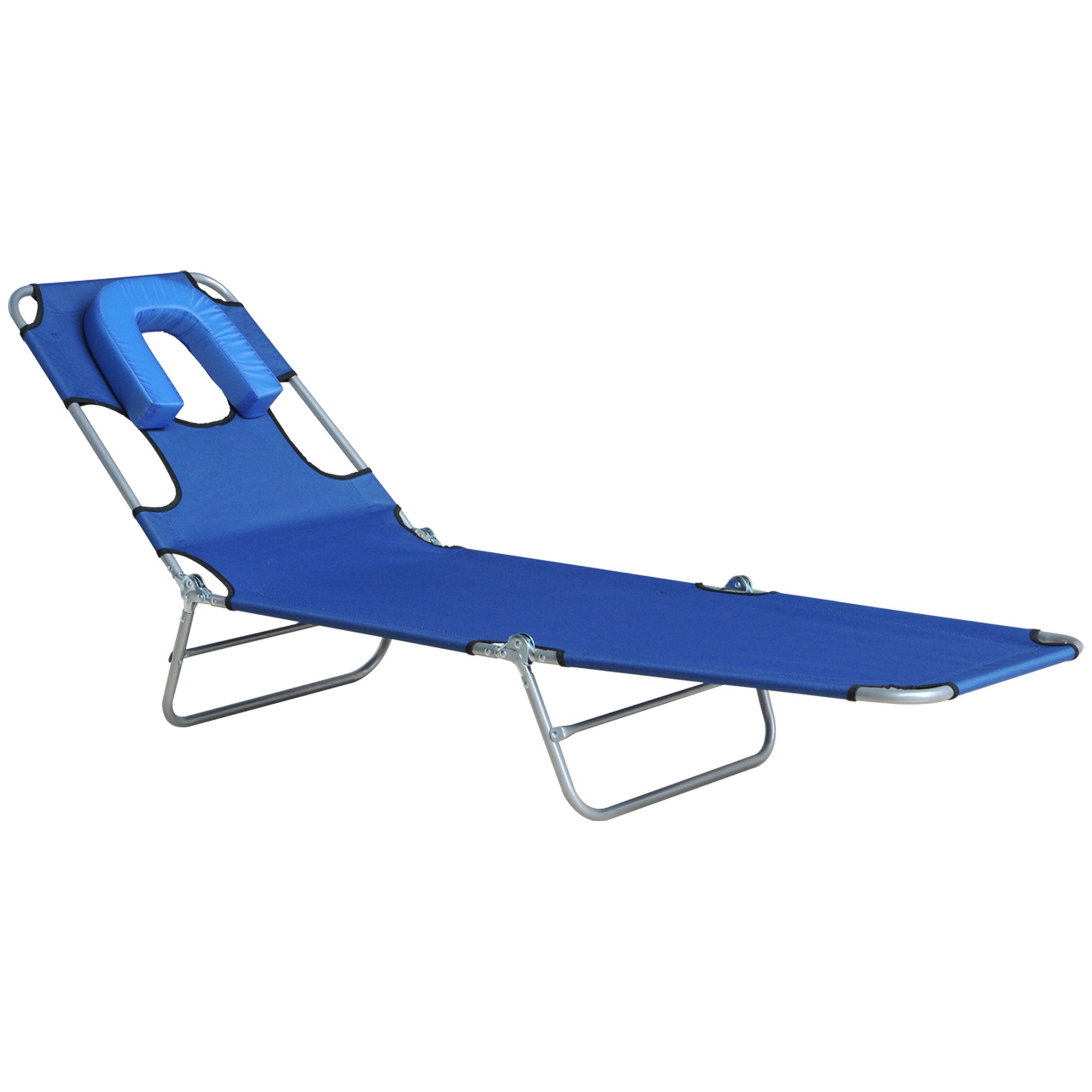 You can enjoy the sunbathing and soothing breeze at the beach, pool, lakeside with this reading lounge chaise from Outsunny! Built in heavy duty steel construction and covered with the breathable oxford fabric, this lounger durable and stable, and offer you ultimate comfort. In addition, the patented face cavity provides the option of face down lounging for convenient reading. Portable and lightweight, this is a great companion to your outdoor activities!