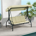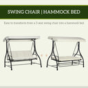 Outsunny Convertible Patio Swing Bed with Canopy and Cushions, 3 Seater Porch Swing for Outdoor, Backyard, Garden, Cream White