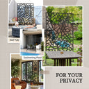 Outsunny's decorative privacy panels add style to your landscape. They play with light and shadows, featuring a fence motif, enhancing pathways and gardens. Suitable for use as trellises, these panels offer ample space for climbing vines.