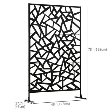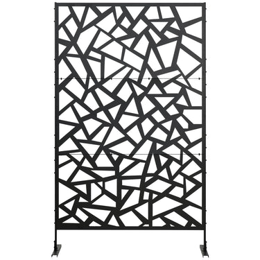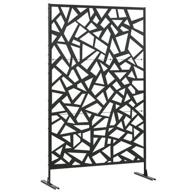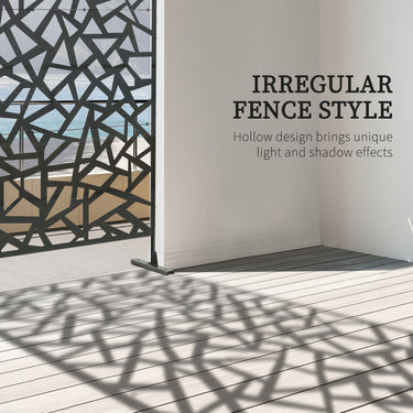 Outsunny Garden Privacy Screen, Decorative Outdoor Divider, Metal Privacy Screen with Stand, Irregular Fence Style, Black