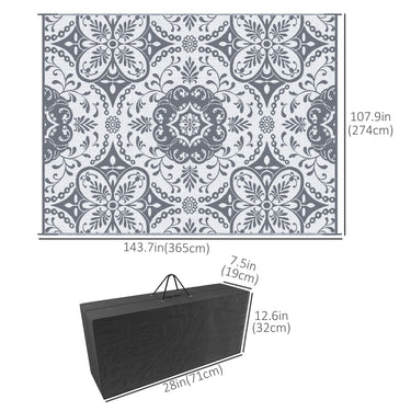 Outsunny Portable Outdoor Rug with Carry Bag, 9' x 12' Reversible Mat, Waterproof Plastic Straw RV Rug for Backyard, Deck, Picnic, Beach, Camping, Blue & White Flower