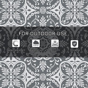 Set up your activity base for camping or other outdoor activities. The waterproof outdoor rug with a carrying bag is specially designed for outdoor use like camping, picnic, road tour, etc. It's widely suitable for camper vans, RVs, the beach, gazebos, patios, playrooms, and anywhere you need it. The durable material resists water and UV, which is anti-fading and protects from ground moisture. Furthermore, flip it over to update the look and style! Be the envy of your friends.