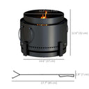 Outsunny Smokeless Fire Pit with Ash Catcher, Portable Wood Burning Firepit with Poker for Garden Camping Bonfire Party, Black