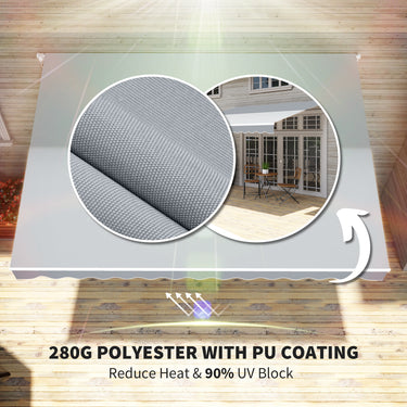 Outsunny 12' x 10' Retractable Awning Patio UV Resistant Fabric and Aluminum Frame for Deck, Balcony, Yard, Grey