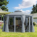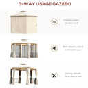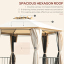 Outsunny 13ft Hexagon Gazebo Outdoor Canopy Shelter with Netting and Shaded Curtains Beige