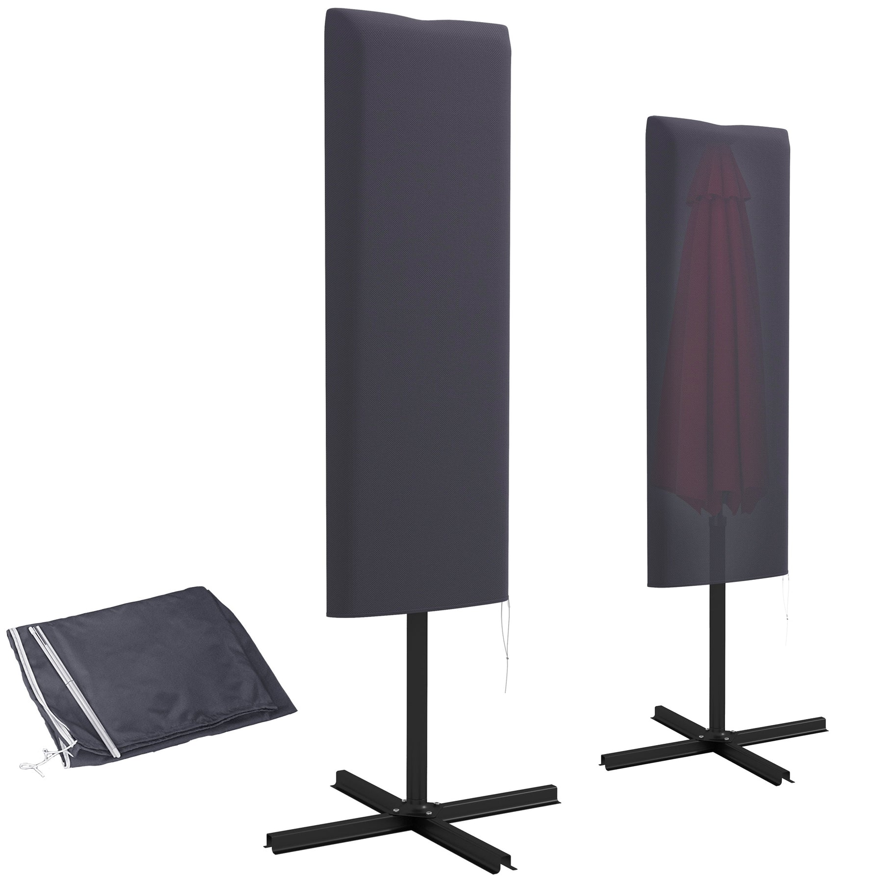 Protect your parasol umbrella when needed with this cover from Outsunny. Made from thick and tough polyester, the shell will not crack, fade or tear, as well as keeping mild rain from leaking through. There is a drawstring fastening on the bottom with cord locks to secure into place - it won't come off in the wind. It's finished with a zip fastening and can also be wiped clean easily.
