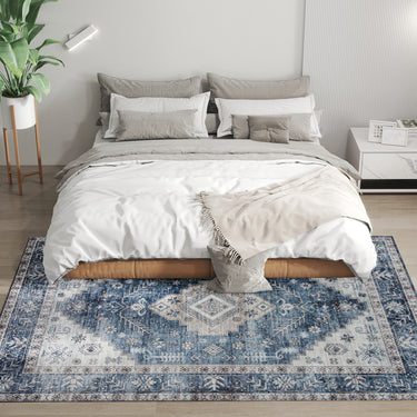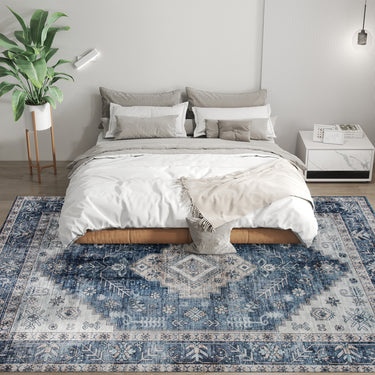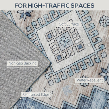 HOMCOM 6x9 Area Rug, Vintage Machine Washable Rug, Non-Slip Floor Carpet for Living Room, Bedroom, Dining Room, Blue