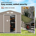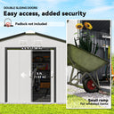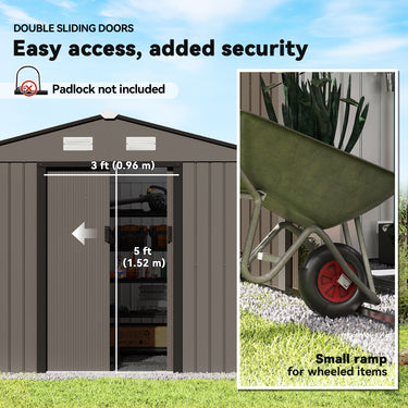 This Outsunny metal shed outdoor storage is an excellent solution to have in your garden. A great place to store tools, garden equipment, or any items you need to store. Made from tough galvanised steel in finish with 4 air vents and double sliding door for airflow, it can be used for a long period. The whole structure is painted to blend in with surroundings. It can be used as a garbage shed outdoor or as a work shed.