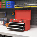 DURHAND 3 Drawer Tool Chest with Metal Latch Closure, Portable Tool Box for Garage, Household and Warehouse, Red