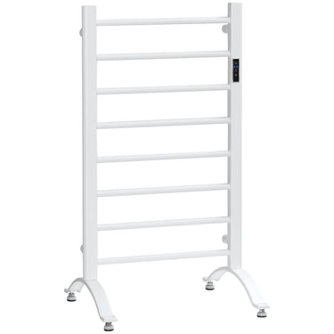 HOMCOM 8-Bar Heated Towel Warmer Rack with Built-in Timer and LED Indicators, Wall Mounted & Free Standing Carbon Steel Electric Towel Bar with Adjustable Temperature, White