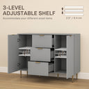 HOMCOM Modern Kitchen Storage Cabinet, Sideboard Buffet Cabinet w/ 3 Drawers and Adjustable Shelves for Kitchen Hallway, Grey