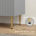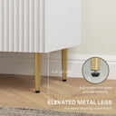 - • Metal legs, gold handles and fluted panel design give it a modern look