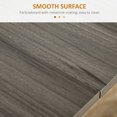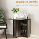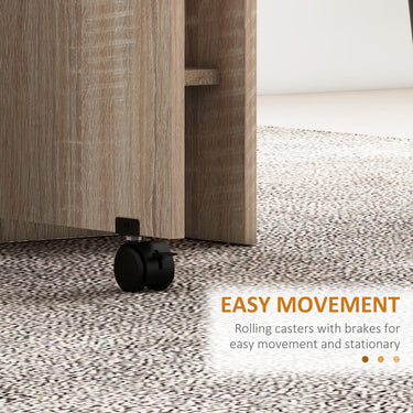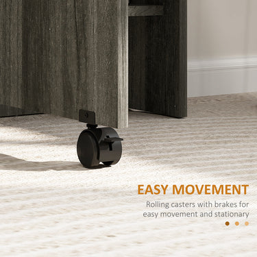 Make large unused tables at home a thing of the past. Choose this HOMCOM folding table with storage for extending surface space, whenever you need it. Both sides lift up and drop down super easily. Inside there are two shelves for close by and discreet storage - easy to keep things close to you. Side panels are complete with braked wheels for expanding and folding the kitchen table conveniently.