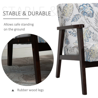 HOMCOM Mid-Century Modern Accent Chair Retro Fabric Armchair Wooden Arm Upholstered Lounge Chair for Living Room Floral