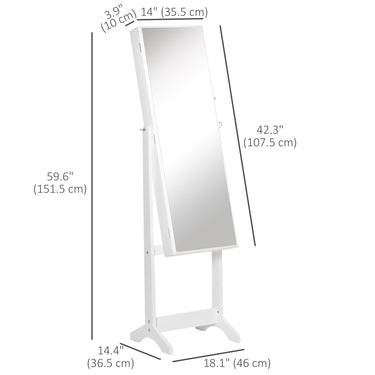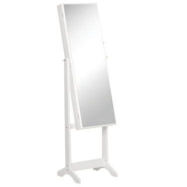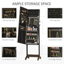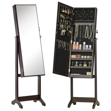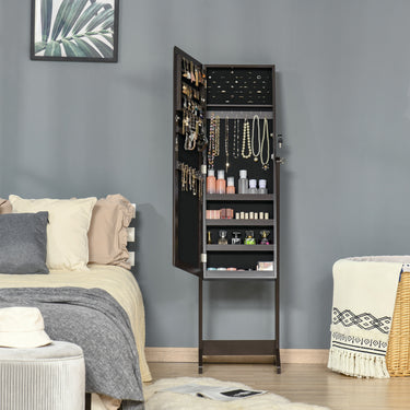 With this HOMCOM makeup storage mirror, you can keep all of your jewellery organised and conveniently accessible. On the exterior, a full-length mirror is installed and may be adjusted to your liking. Inside, there are 100 earring slots, a bracelet hanger, 24 necklace hooks, 105 ring slots, and four-layer storage shelves, allowing you to keep everything in a place. This item is safe for regular usage since the frame is made of MDF. Something that will enable you to get ready all in a place.