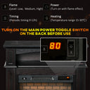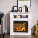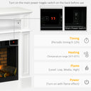 - • Freestanding design electric fireplace heater with full-frame wooden mantel