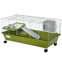 PawHut Small Animal Cage, Rolling Bunny Cage, Guinea Pig Cage with Food Dish, Water Bottle, Hay Feeder, Platform, Ramp, Green