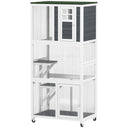 PawHut 74" Wooden Outdoor Cat House Weatherproof & Wheeled with High Weight Capacity, Kitten Cage Condo, White