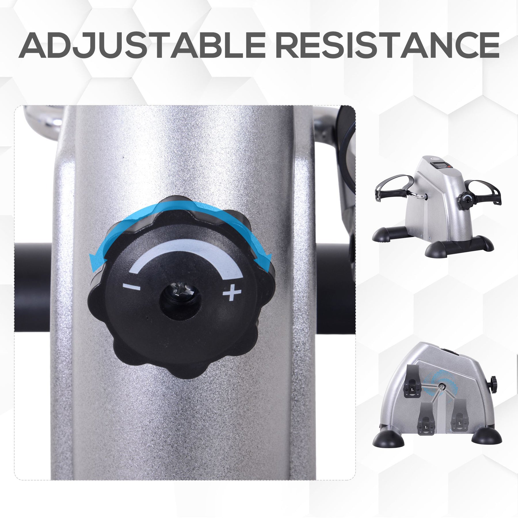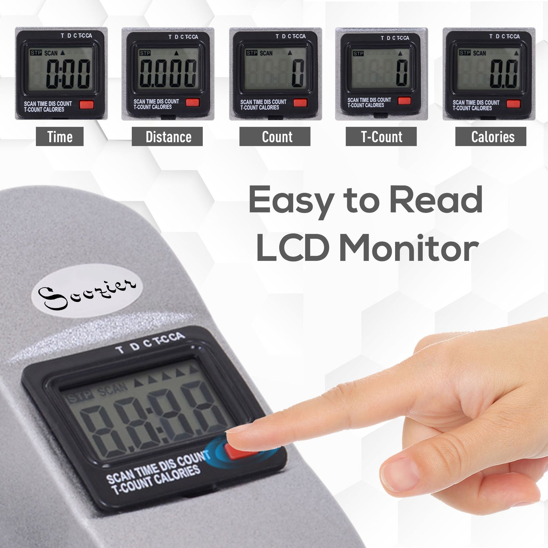 The rotary resistance knob allows you to adjust your upper and lower body exercises to varying levels of strength. Includes an LCD display to track time, distance, count(total count) and total calorie. Designed for exercising both arms and legs, this desk bike is suitable for all ages and helps improve cardiovascular function and blood circulation. Get your blood flowing and your heart pumping with our Soozier desk pedal exerciser today!