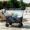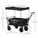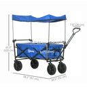 Outsunny Steel Frame Folding Garden Cart, Collapsible Wagon Cart with Removable Canopy, Telescopic Handle and Carrying Bag