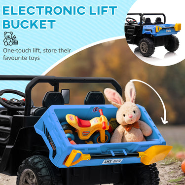 Aosom 12V Ride on Car with Electric Bucket, Two-Seater, Shovel, Remote Control, Spring Suspension, Horn, Music, Red
