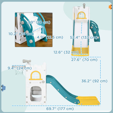 Discover endless fun with Qaba Kids Slide! This 4-in-1 toddler slide features a thrilling slide with an acceleration area, deceleration zone and buffer to ensure safe play. It also includes a basketball hoop and telescope for adventurous playtime. Designed with closed steps to prevent slips, it's a great indoor slide for little explorers aged 1-3.