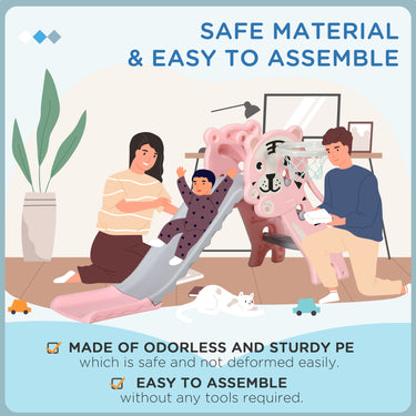 Designed to provide your child with hours of endless fun while ensuring safety and age-appropriate entertainment. Qaba kids slide comes with two ladder stages, complete with anti-slip design to ensure your kid has a safe footing. Features of this slide are the side-mounted basketball hoop. Your child will enjoy practicing their basketball skills while enjoying the slide. Additionally, it's incredibly easy to assemble. With an adorable lion theme, adds a playful touch to your child's play space.