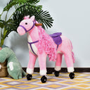 Qaba Kids Rocking Horse, Large Walking Ride on Toy for Toddlers 3 year old, Baby Plush Animal Rocker with Sound and Wheel, Pink