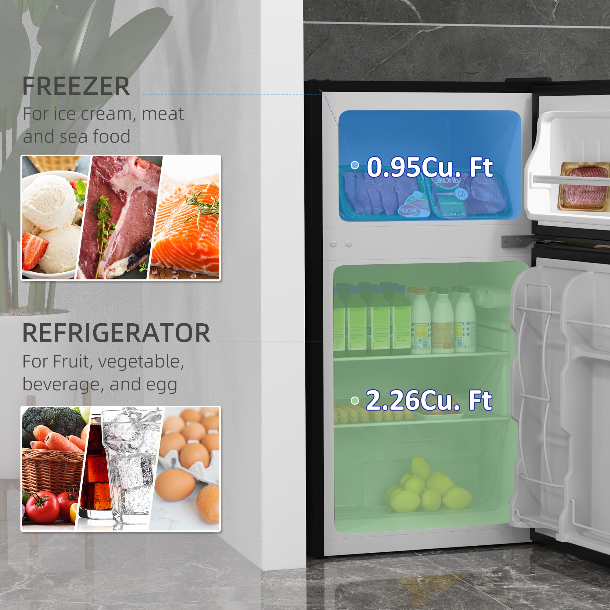 HOMCOM 3.2 Cu Ft Compact Refrigerator, Mini Fridge with Freezer, Adjustable Shelves and Reversible Doors for Bedroom, White