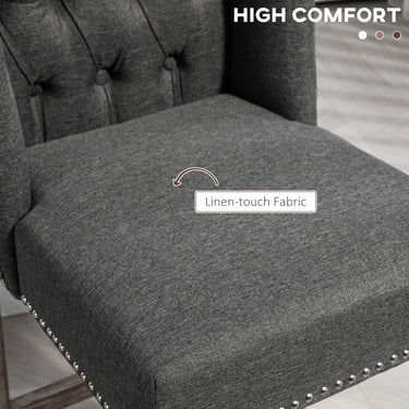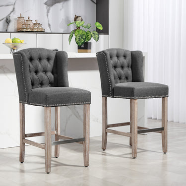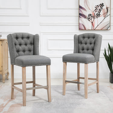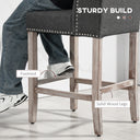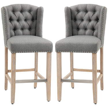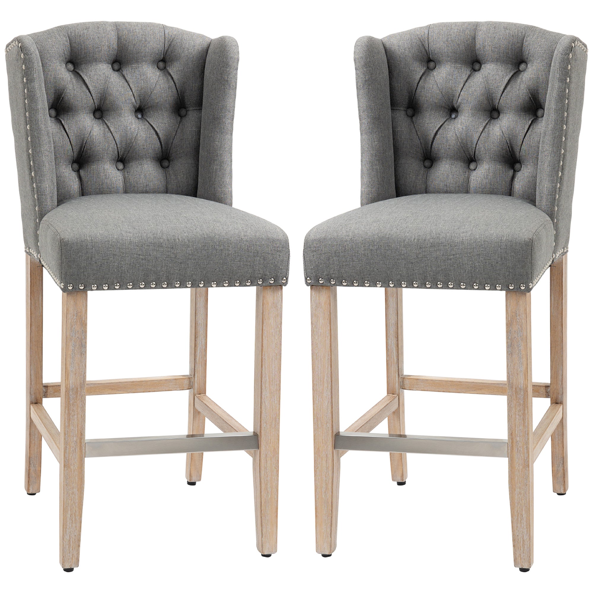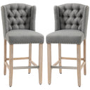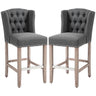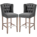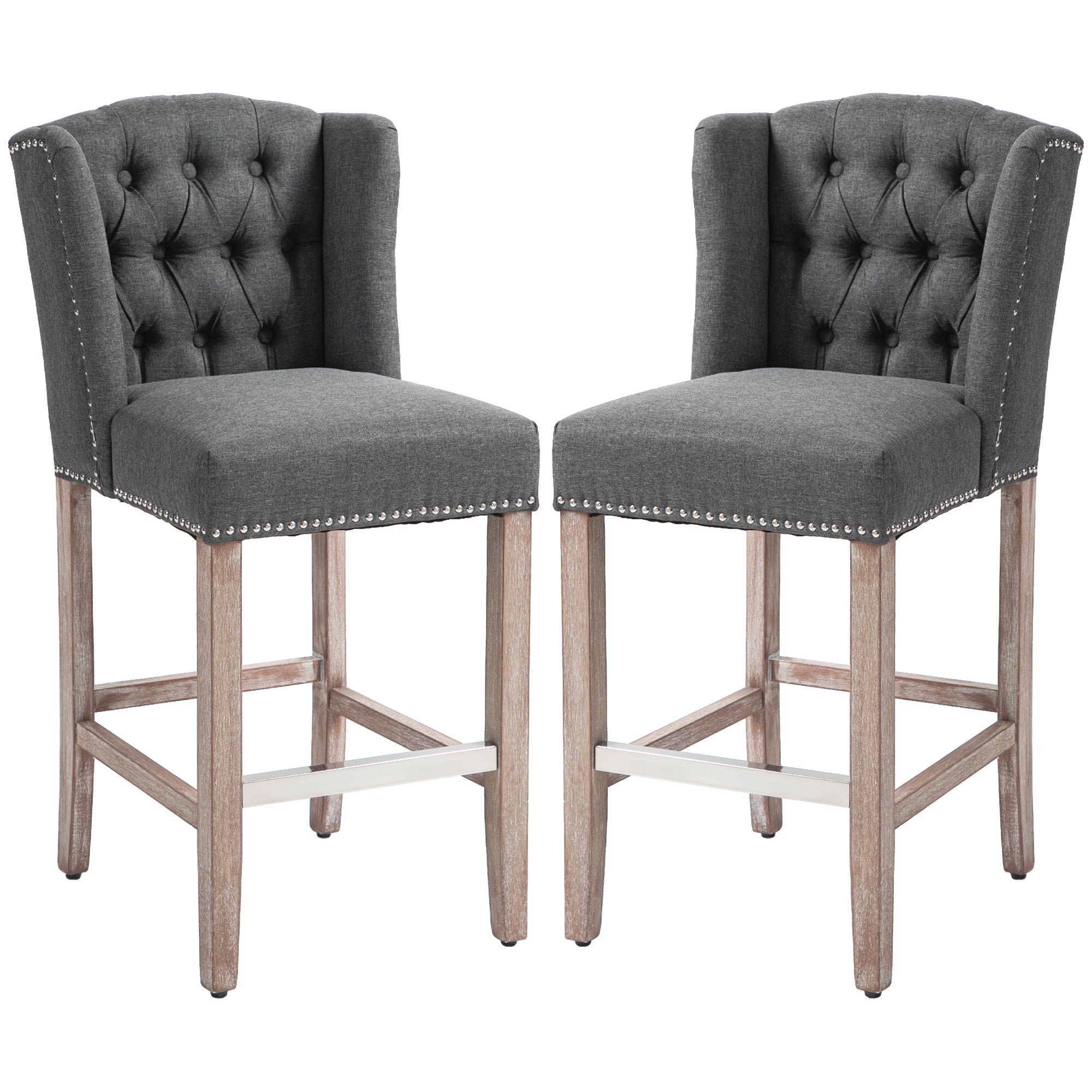 HOMCOM Counter Height Bar Stools Set of 2, Upholstered Bar Chairs with Nailhead Backrest and Footrest, Charcoal Grey