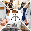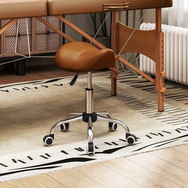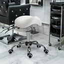 HOMCOM Cosmetic Stool 360° Rotate Height Adjustable Salon Massage Spa Chair Hydraulic Rolling Faux Leather Saddle Stool Mobility, Cream White