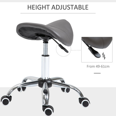 Ensure you have the correct posture when work in your saloon/tattoo parlour, or even at home, with this hairdressing chair from HOMCOM. A heavy metal base provides balance and stability, with an adjustable height between 49cm and 61cm — set this stool to your preferred level. The moulded seat is padded, for comfort and posture support. Five wheels to move around easily whilst seated.