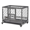 PawHut Heavy Duty Dog Crate w/ Wheels, Openable Top, Removable Tray, Bowl, for Large Dogs-Sized Dogs, 36.4" x 24.4" x 31.1"