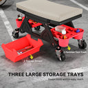 HOMCOM Rolling Garage Stool with Wheels, 300 LBS Capacity Padded Mechanic Stool with Tool Trays Storage, Black