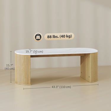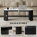 Transform your living space with the HOMCOM coffee table, where modern design meets family-friendly functionality. Its sleek white marble-effect finish and black accents elevate any living room table setup. Thoughtfully crafted with rounded edges, this center table minimizes collision risks, offering peace of mind for your family. Style, safety, and durability—all combined.