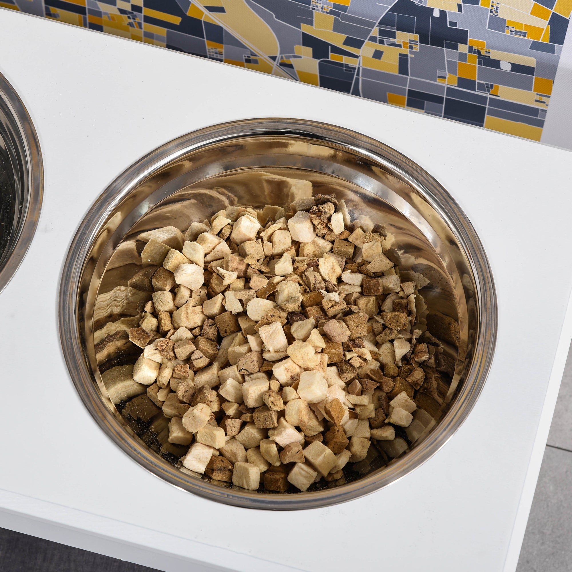 - • Elevated pet bowls with anti-slip feet make it stable and prevent sliding, offering protection for your floors also.