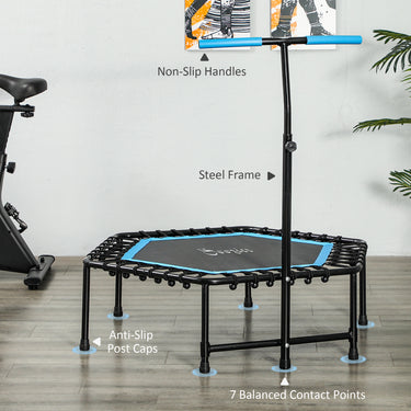 Whether you're looking to exercise inside, outside, or during your lunch break in the office, then this small trampoline from Soozier is great for helping you improve your fitness. Adjust the fitness trampoline with handle to your comfort with 3 handlebar heights. Experience a gentle bounce with our bungee cord design, great for a low-impact fitness routine on this workout trampoline for adults.