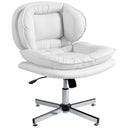 HOMCOM Criss Cross Chair, Armless Wide Office Chair with Leathaire Upholstery, Tilting, No Wheels, White
