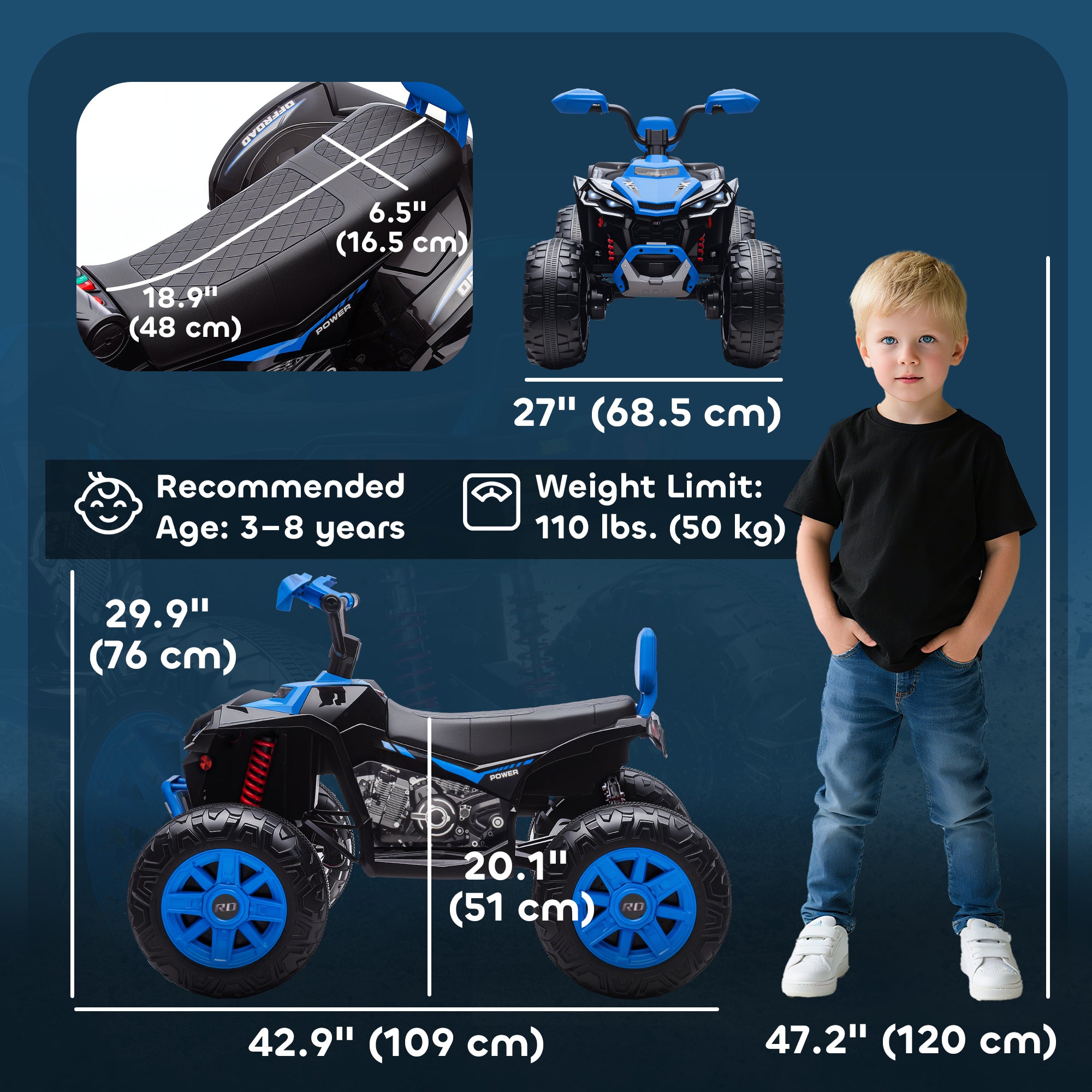 Get ready to ignite your child's imagination with thrilling outdoor adventures in this powerful Qaba kids ATV! This 24V dual-motor quad offers adjustable speeds, an extended two-seater design, and up to 70 minutes of continuous play. Its all-terrain tires with spring suspension handle pavement, grass, and sand with ease. Fun extras, such as music, MP3, and headlights, make every ride unforgettable. The great ride-on for fun, friendship, and freedom.