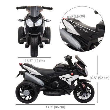 Qaba Kids Electric Motorcycle Ride-On Toy, with 3 Wheels, Music, Horn, Lights, Red