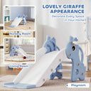 Qaba 3 in 1 Toddler Slide for Age 1-3, Kids Slide with Climber, Basketball Hoop and Ball, Giraffe Design, Blue