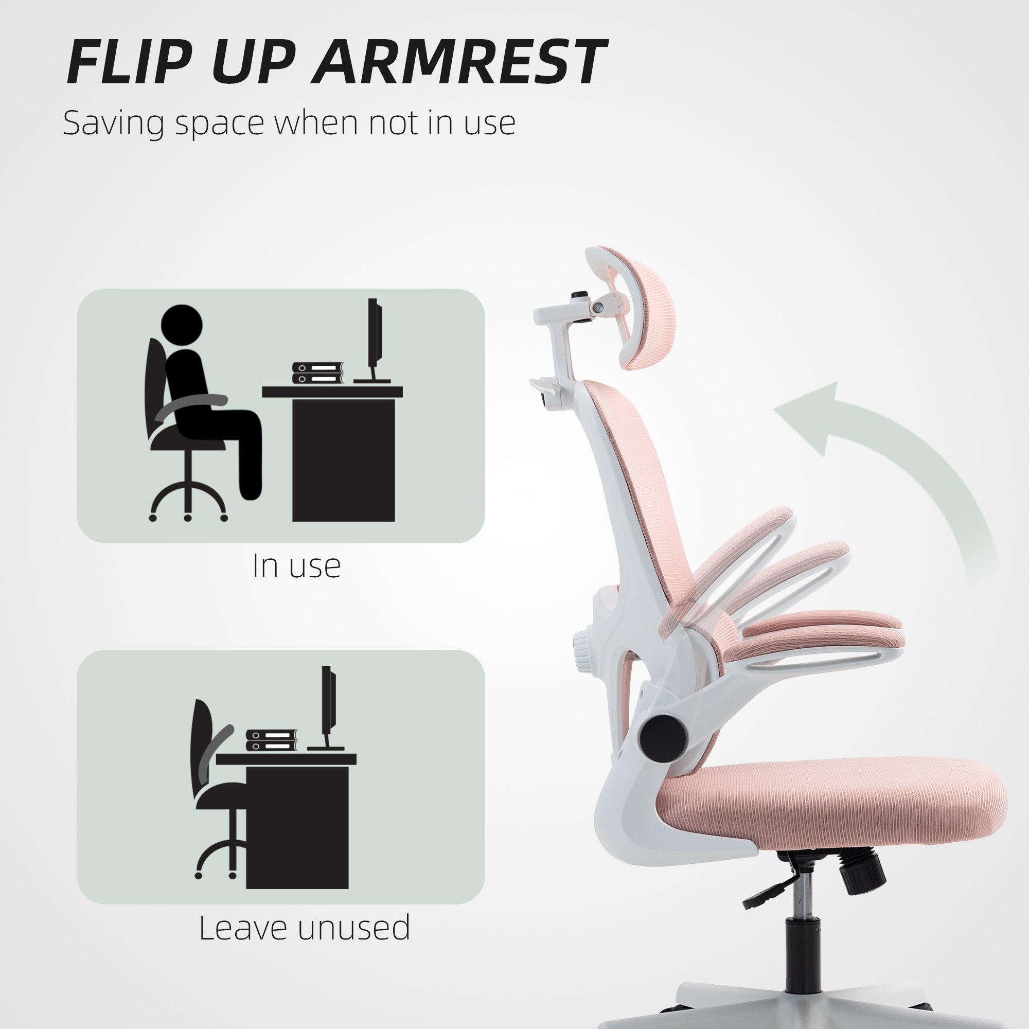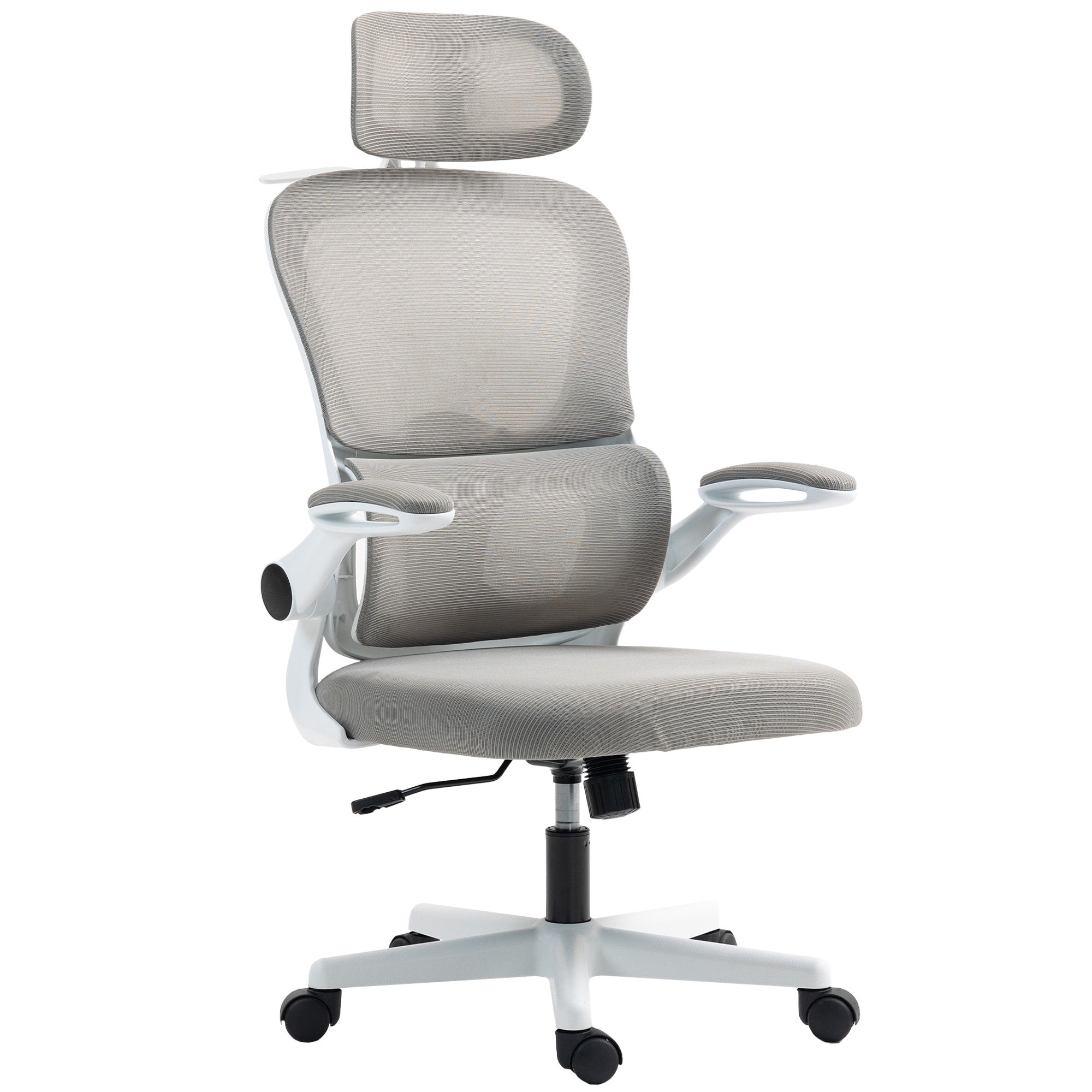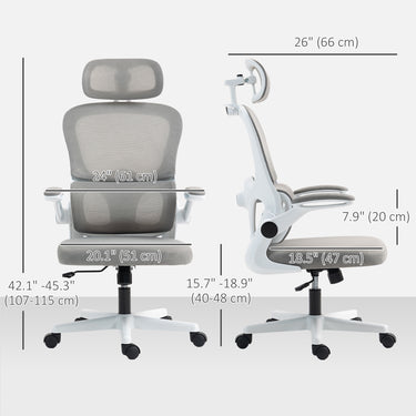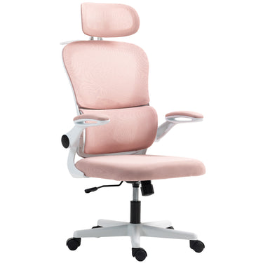 HOMCOM Mesh Office Chair, Ergonomic Desk Chair with Flip-up Armrest, Rotatable Headrest, Adjustable Lumbar Support, Black