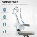 Say goodbye to discomfort with the HOMCOM Ergonomic Office Chair! Tailor your throne with an adjustable headrest and lumbar support that hug your body's contours. Plush high-density foam and breathable mesh fabric ensure you stay cool and comfy all day. This desk chair is a game-changer for anyone looking to boost comfort and productivity in their workspace.
