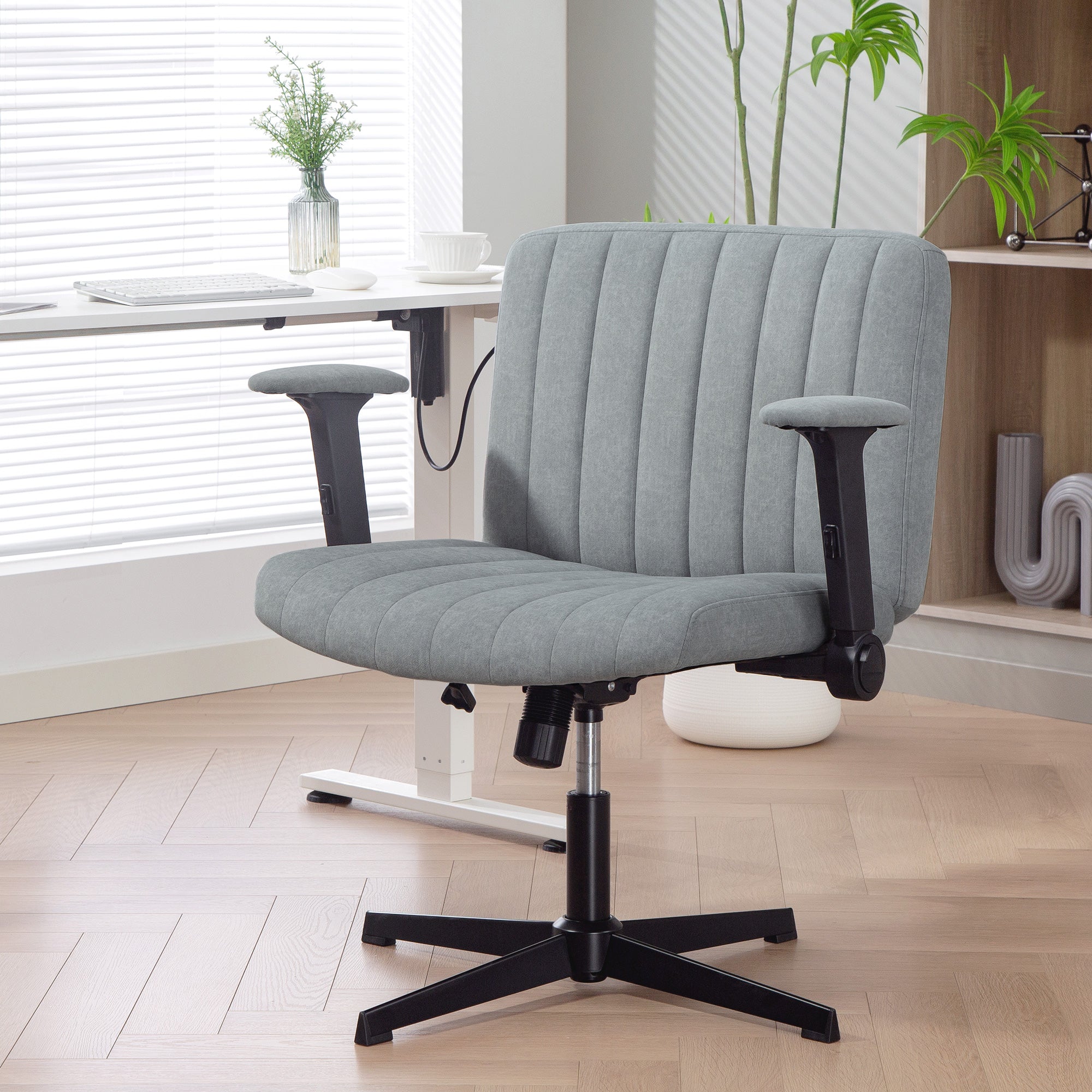 HOMCOM Criss Cross Chair with Flip-up Armrests, Wide Office Chair with Adjustable Height, Tilting, No Wheels, Beige