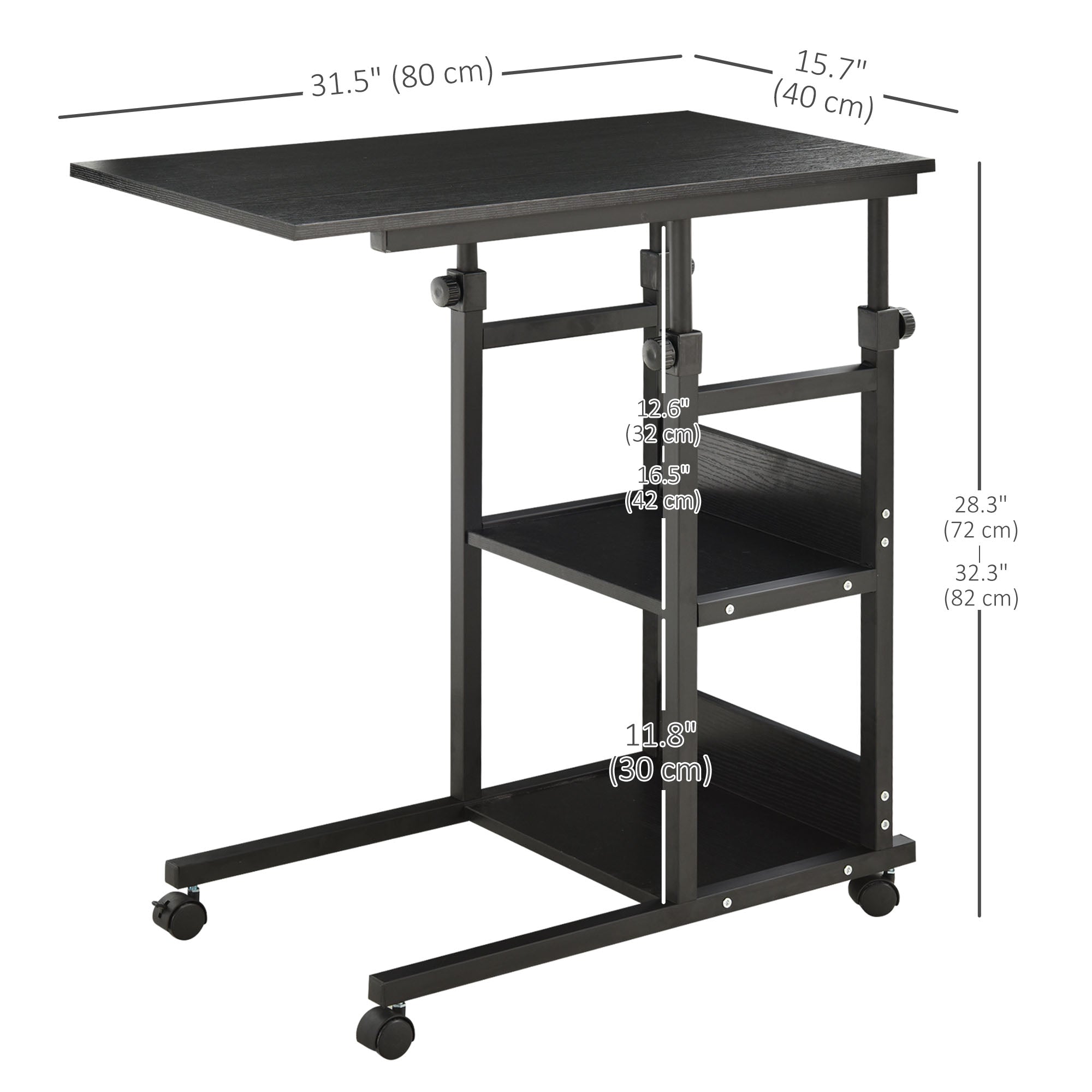HOMCOM Mobile Standing Desk, Adjustable Height 31.5 inch Stand Up Desk with Wheels for Home Office, Rustic Brown