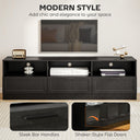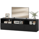 Tired of a living room that feels cluttered and chaotic? It's frustrating when your space lacks a stylish, organized focal point. The HOMCOM tv stand with storage transforms your area into a serene retreat. Its three cabinets and open compartments conceal clutter, while the reliable TV table design securely supports up to an 85-inch TV. The elegant shaker-style doors with gold-tone handles add a refined touch, enhancing your home's ambiance.
