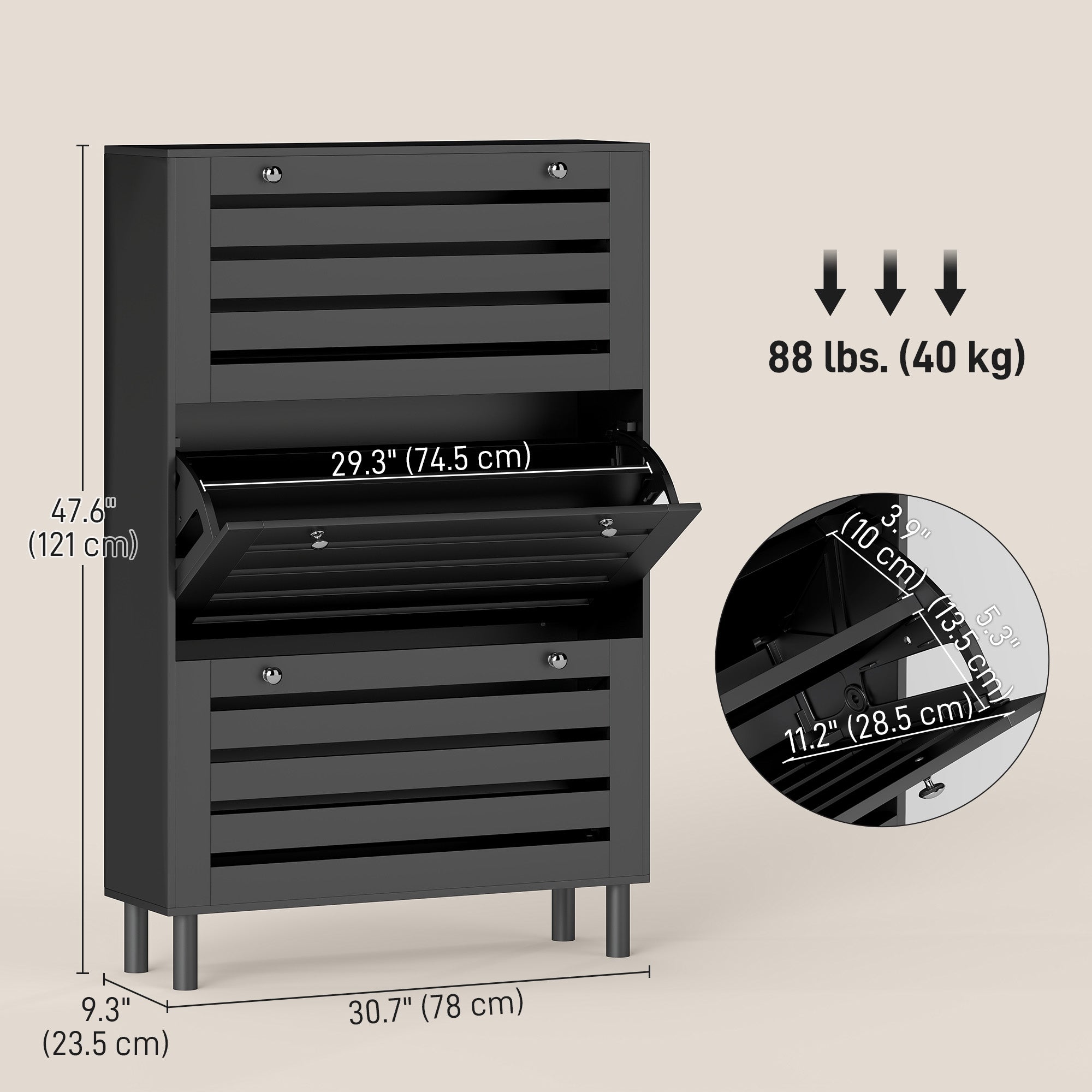 A narrow storage unit is an indispensable piece of furniture for every family, but not every piece can meet your needs. Our HOMCOM shoe cabinet for entryway is specially built for you. Features three flip doors for enough shoe storage needs. You can also display decorations on the countertop. Anti-tipping design allows this closed shoe storage to be suitable for homes with little ones and pets. Just purchase it, and you won't regret it.