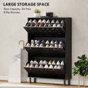 - • Can store up to 24 pairs of shoes in 3 flip down drawers